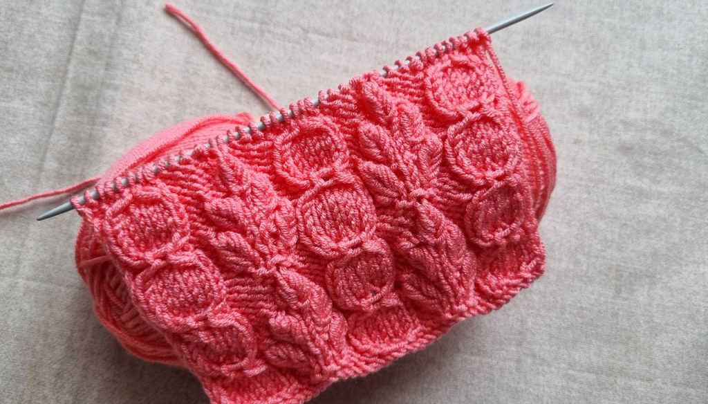 8. Bu sırada ilmekleri gördüğümüz şekilde örüyoruz. Sadece yaprak yaptığımız ilmekleri düz olarak örüyoruz.
